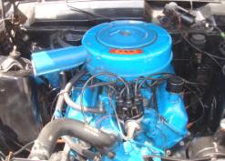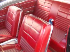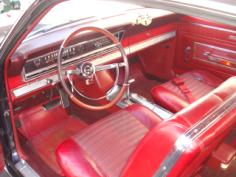 The car has the small block 289 cu in V8 engine with a C4 automatic transmission with a console mounted shift lever. The only power feature on the car is the power steering. The brakes are manual, as are the windows. The car has the standard AM radio and all gauges, lights, etc work well. The color combination is black over a beautiful red vinyl bucket seat interior. This car being the XL – was the upper trim level and had more chrome than the basic model did. Even more than the standard 500.