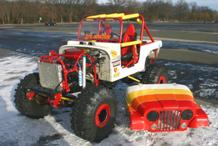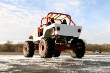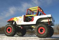 I bought a new fiberglass body for it. When I got the new body, that's when I decided to build a full competition off-road vehicle. Since I love to ride in the woods and trails, I started to build a Rock Crawler. When I removed the old body, I removed everything. All I used from the original Jeep was the chassis. I built my own 1/4 Elliptic rear suspension with a Ford 9" rear axle. Also the front axle was replaced with a custom made Currie Ford 9" axle. After building the chassis, I installed a new modified Ford 302 engine. This is some of the work done to my truck in the past 9 years since the project started: