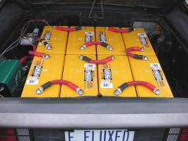 They immediate went to work and removed the engine, exhaust system, radiator cooling system and fuel tank. This took about 500 pounds of weight off of the car. More weight would be added back soon! With that out of the way a number of decisions had to be made. What type of batteries to use, how many and where to put them? What motor and controller?